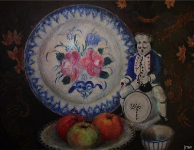 So fliessen zum Beispiel altes Porzelan, "Fitzbattien", Tapetenmuster aus der Abtei Echternach sowie vor allem Gebäude, Befestigungsmauern, alte Häuser, Strassen und Gassen seiner Heimatstadt in die Stillleben und Landschaften.